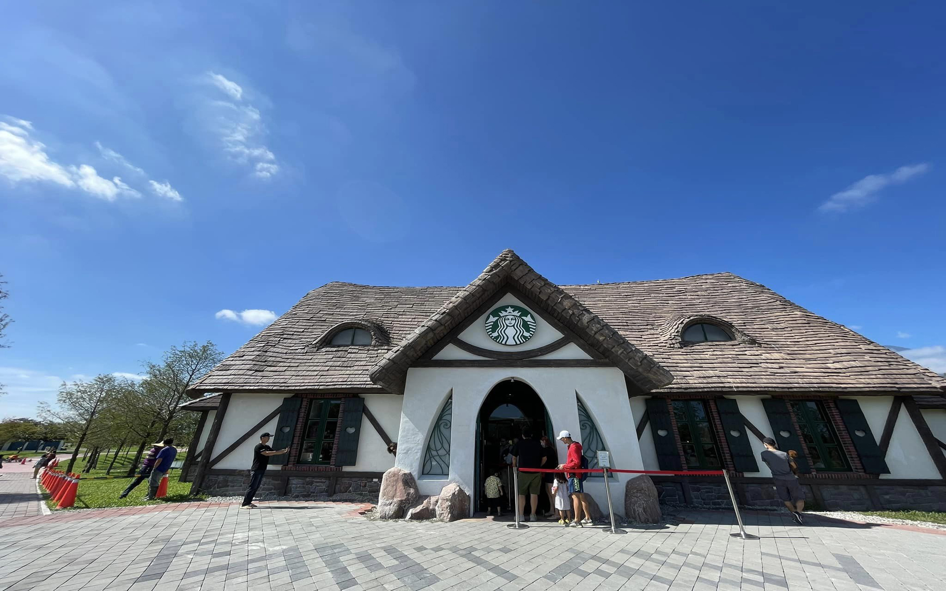 步入「a2水岸」有彷彿秒飛國外小鎮的錯覺,園區內最吸睛的建築就是仿照美國加州Carmel社區的童話屋咖啡廳「星巴克花蓮理想門市」,宛如童話故事「糖果屋」的外觀和半木結構、高而窄的煙囪等,一開幕即引發關注。